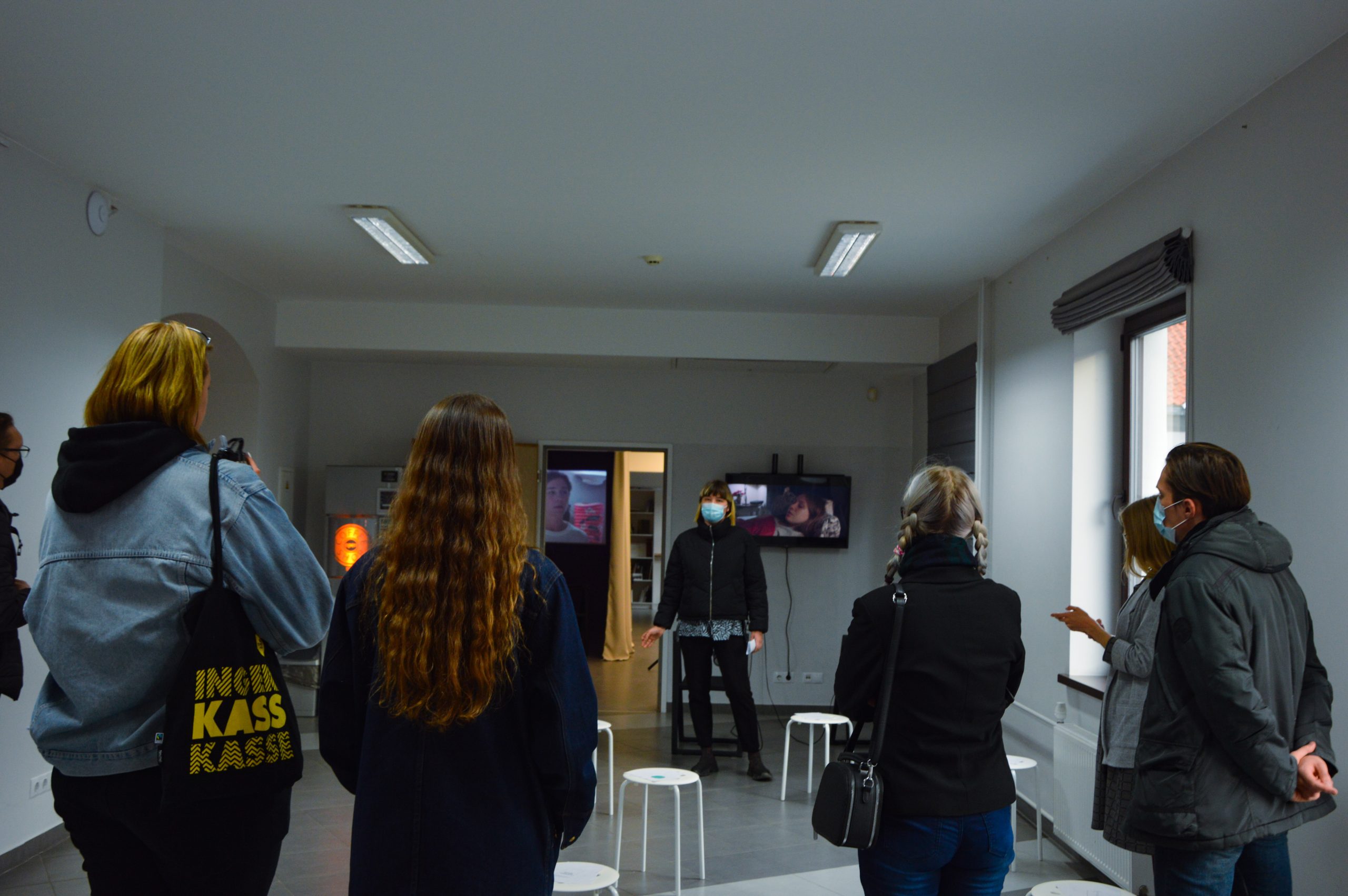 Parodoje „Belaukiant krypties“ eksponuojami menininkių Niamh Seana Meehan (Š. Airija) ir Gintės Regina (Lietuva) darbai jau buvo rodomi Šiuolaikinio meno centre Derry~Londonderry mieste Šiaurės Airijoje. Menininkės buvo pirmosios mainų rezidencijų programos „DeMo“ (Dekoduojant modernybę) dalyvės. Dar 2020 metų vasario mėnesį abi menininkės rezidavo programos partnerių organizacijose: Niamh Seana Meehan dirbo Kauno menininkų namuose, o Gintė Regina – Šiuolaikinio meno centre Derry~Londonderry. Ten, tais pačiais metais, jos surengė dvi individualias parodas vienu metu, kurios dabar susijungia parodoje „Belaukiant krypties“ Kaune. Paroda veiks iki rugsėjo 29 dienos.
